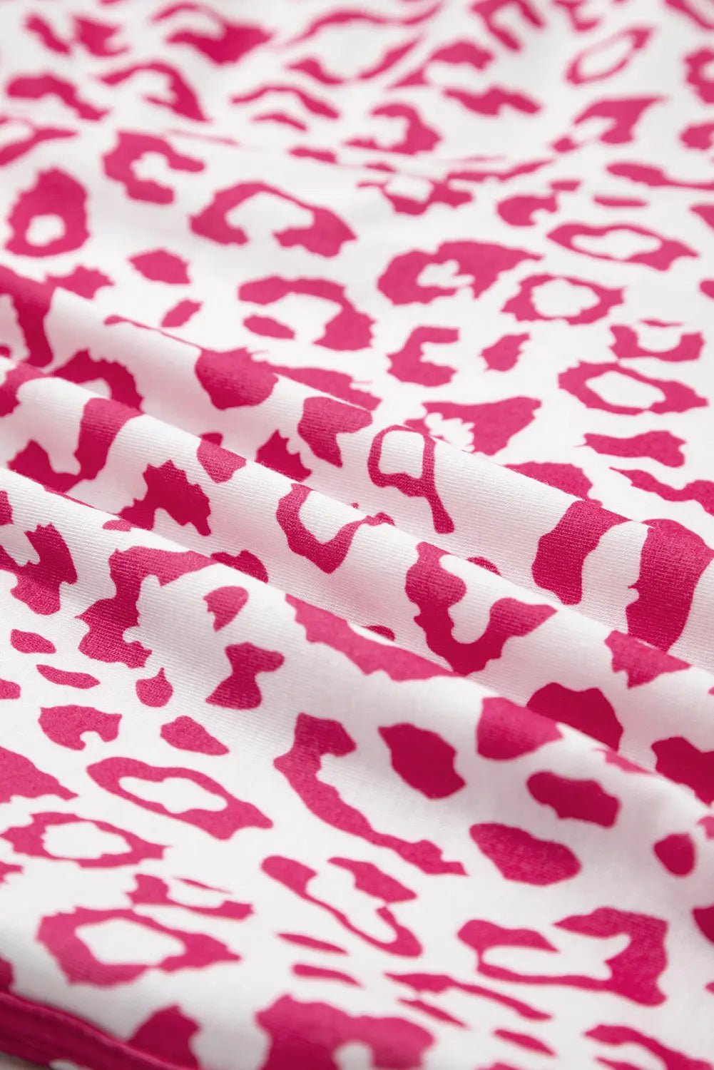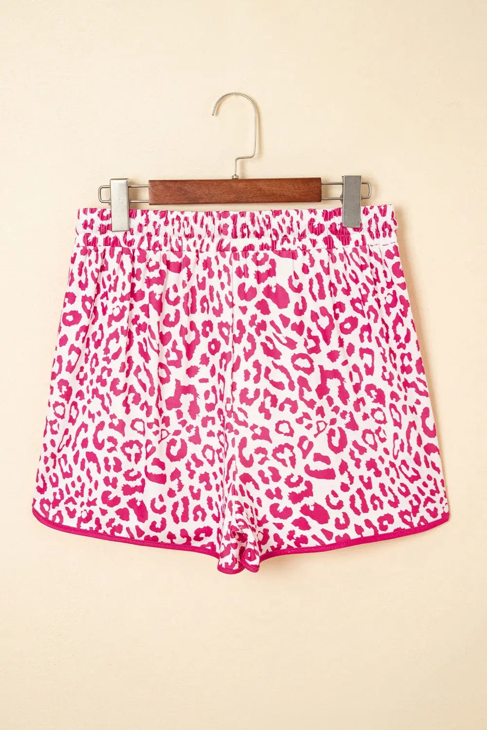 Pink Leopard Elastic Waistband Lace up Contrast Trim Casual Shorts